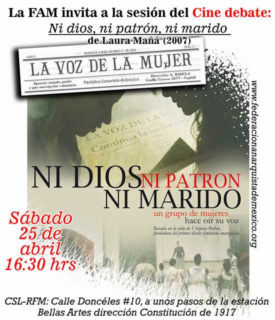 Les invitamos fraternalmente al cine debate de la película "Ni Dios ni patrón ni marido"