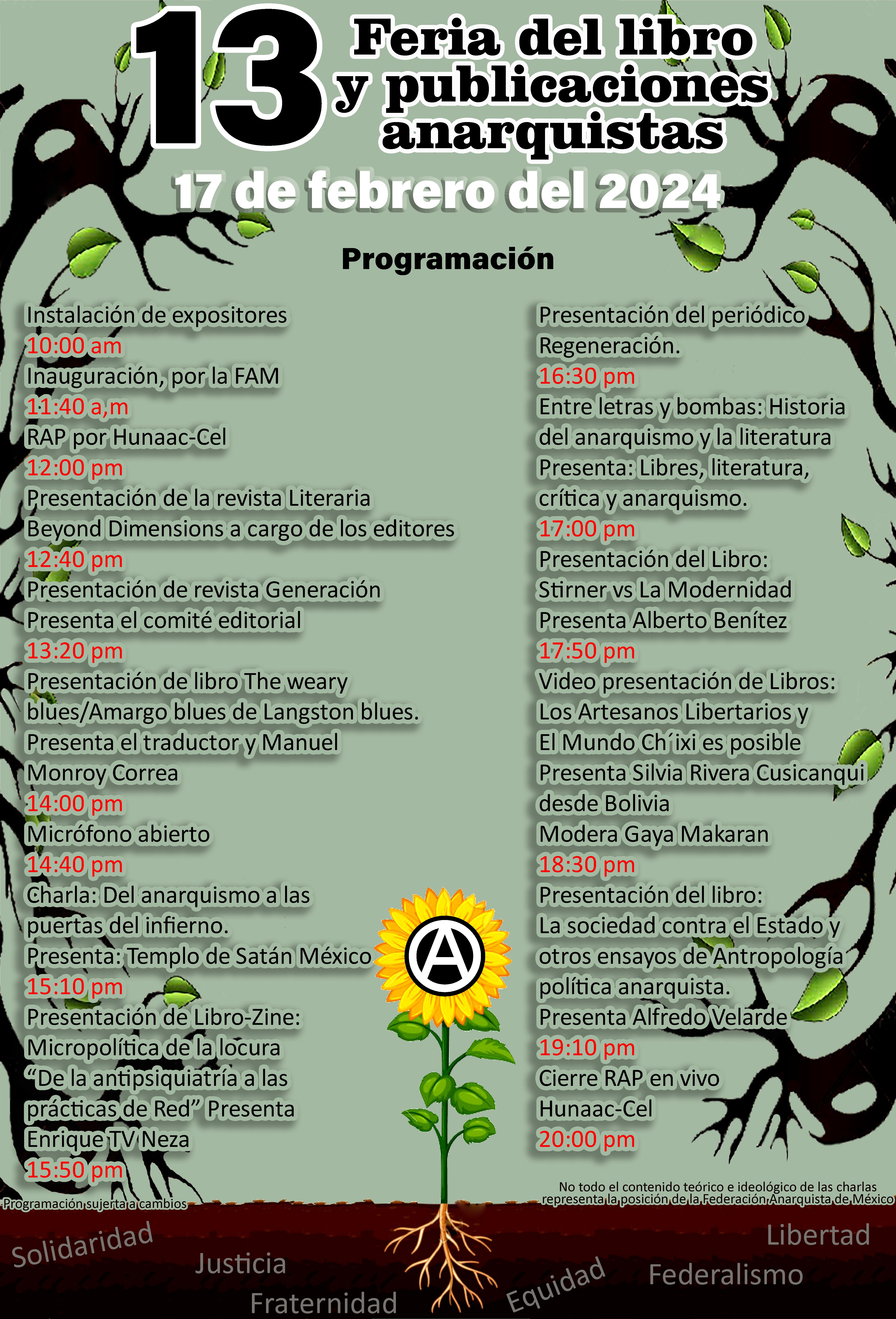 Programación de la 13 feria del libro y la publicación anarquista