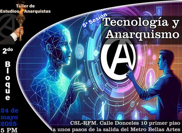 La Federación Anarquista de México invita al Taller de Estudios Anarquistas (5a sesión) con el tema "Tecnología y anarquismo".
